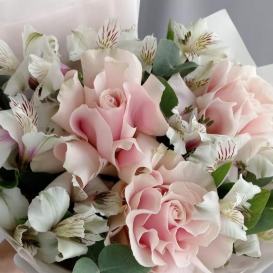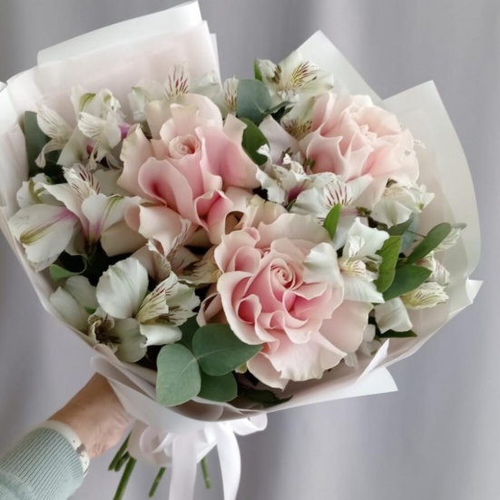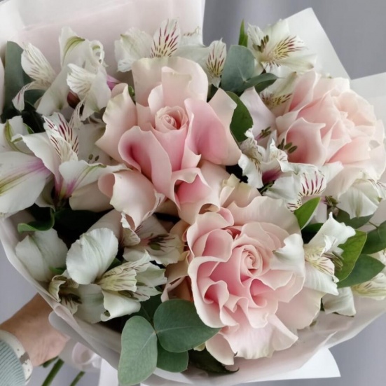 Букет из 3 французских роз и Альстромерии в Астрахани
