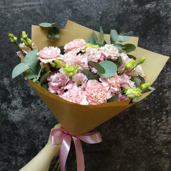Букет из кустовых гвоздик и эустомы в Астрахани